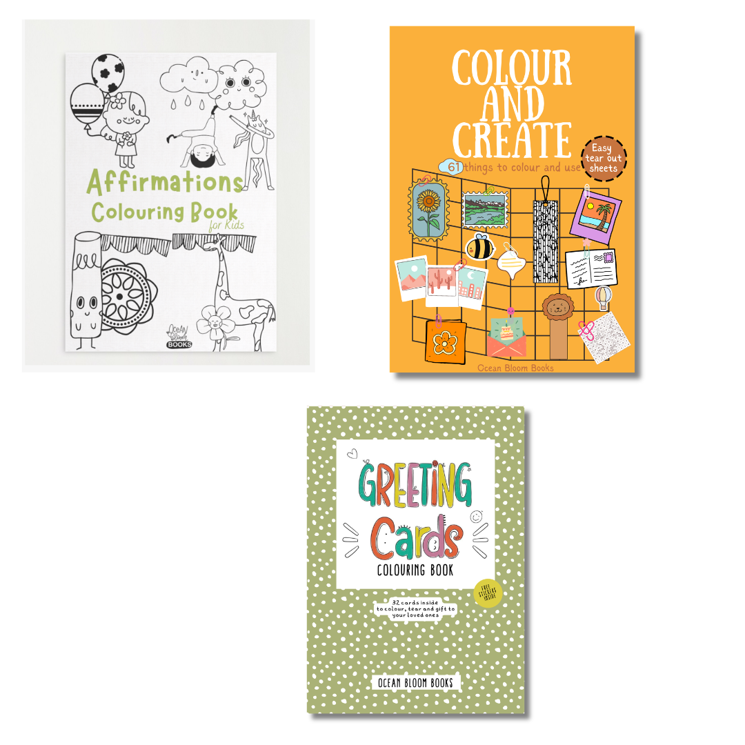 Combo Pack 3 books- Greeting Cards, Colour and Create, Affirmations Colouring Book for Kids